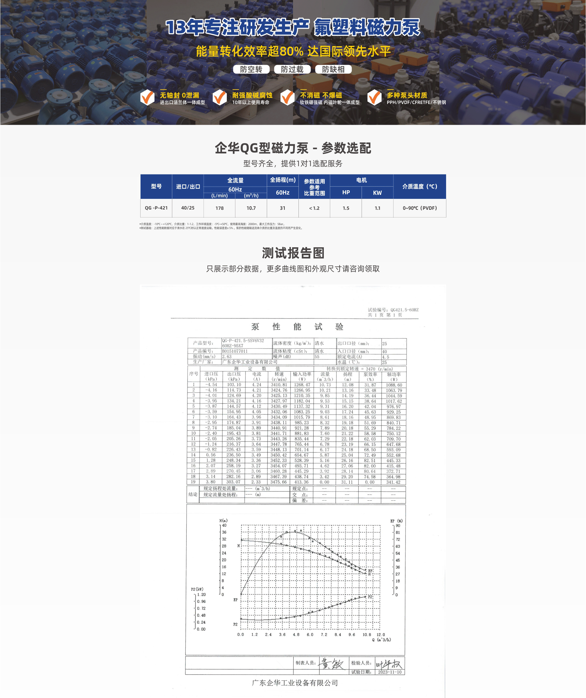 獨(dú)特的雙葉輪結(jié)構(gòu),泵效率超80%,達(dá)到或超過進(jìn)口產(chǎn)品;耐強(qiáng)腐蝕,進(jìn)出口法蘭一體成型,滴水不漏;流量大、振動小、噪音低、高效率、低能耗的選擇。